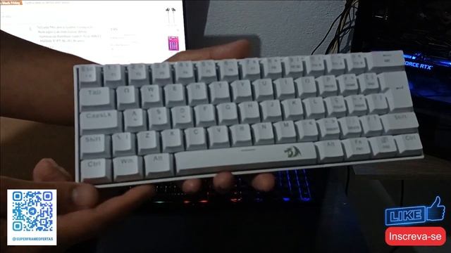 UNBOXING | Teclado Mecânico Gamer Redragon Lakshmi 60% Iluminação Rainbow bom e barato, ABNT2,Branc