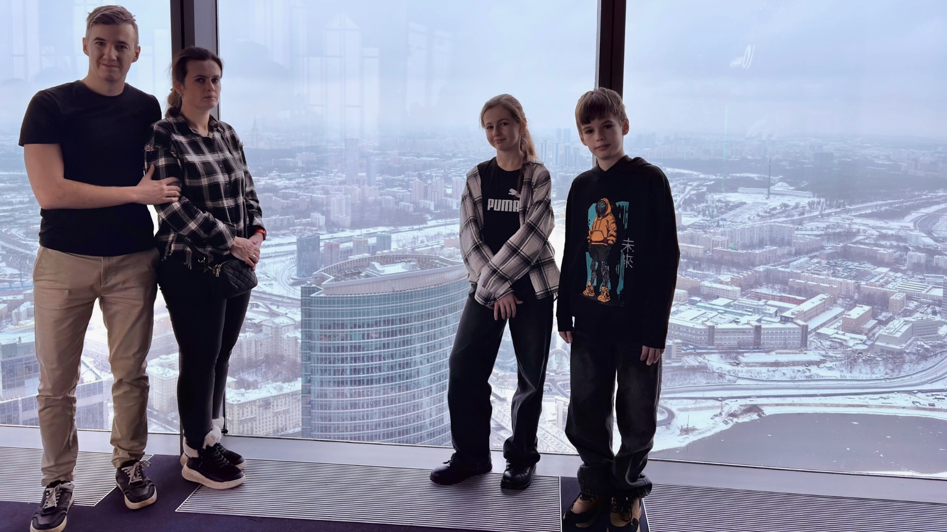 Первый раз сходили в Москва-Сити, посмотрели на город сверху. Спустя пять лет выбрались в парк, чтобы покататься на санках. Раньше снега не было… Ну в цирк ходим регулярно!
