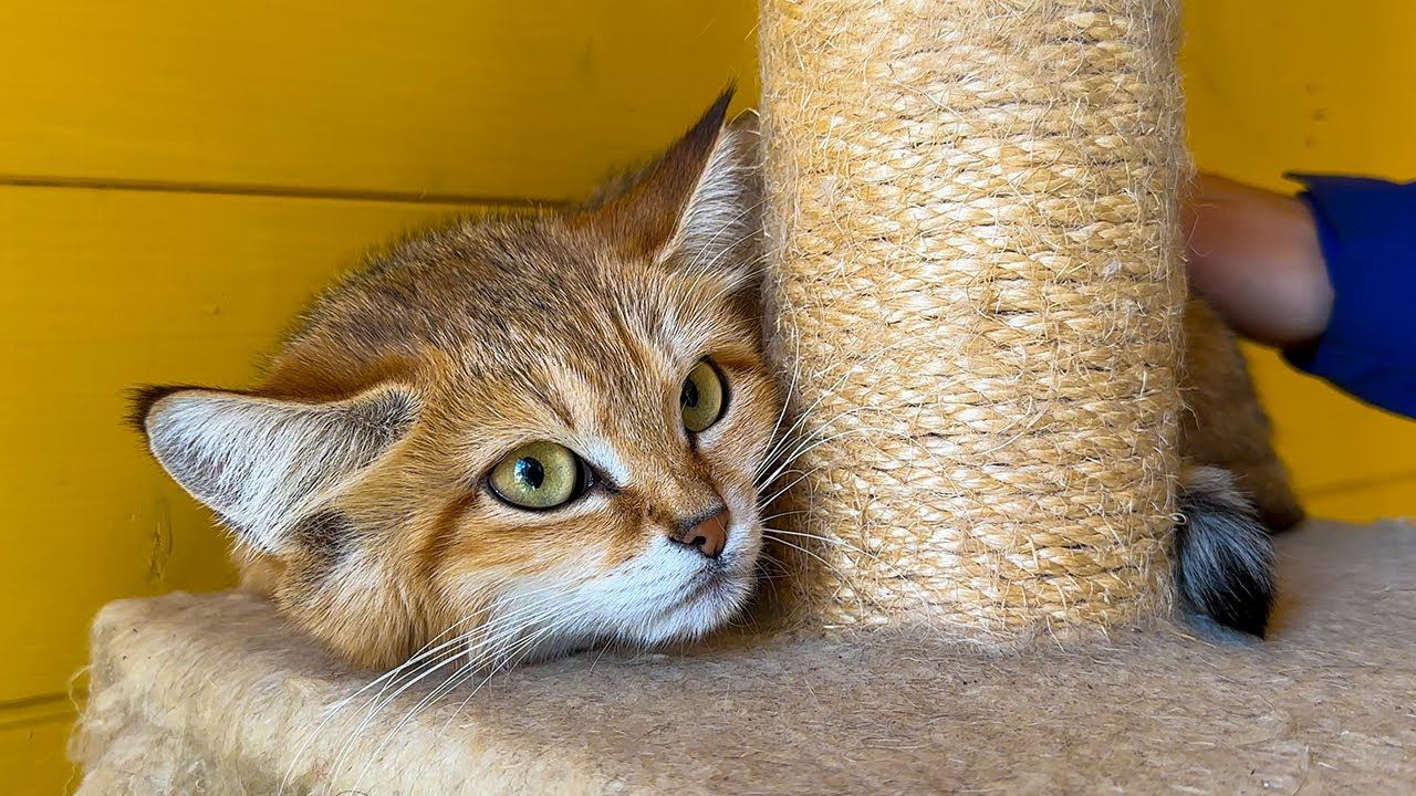 ДИКАЯ БАРХАННАЯ КОШКА ДАЛА СЕБЯ ПОГЛАДИТЬ / Гости в восторге от енотов