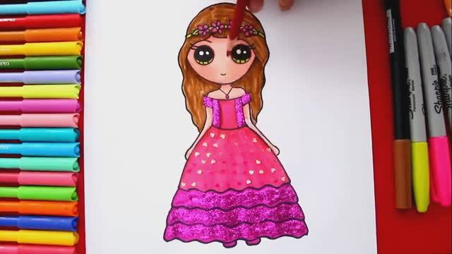 Как нарисовать куклу девочку кавай в праздничном платье с помощью блесток