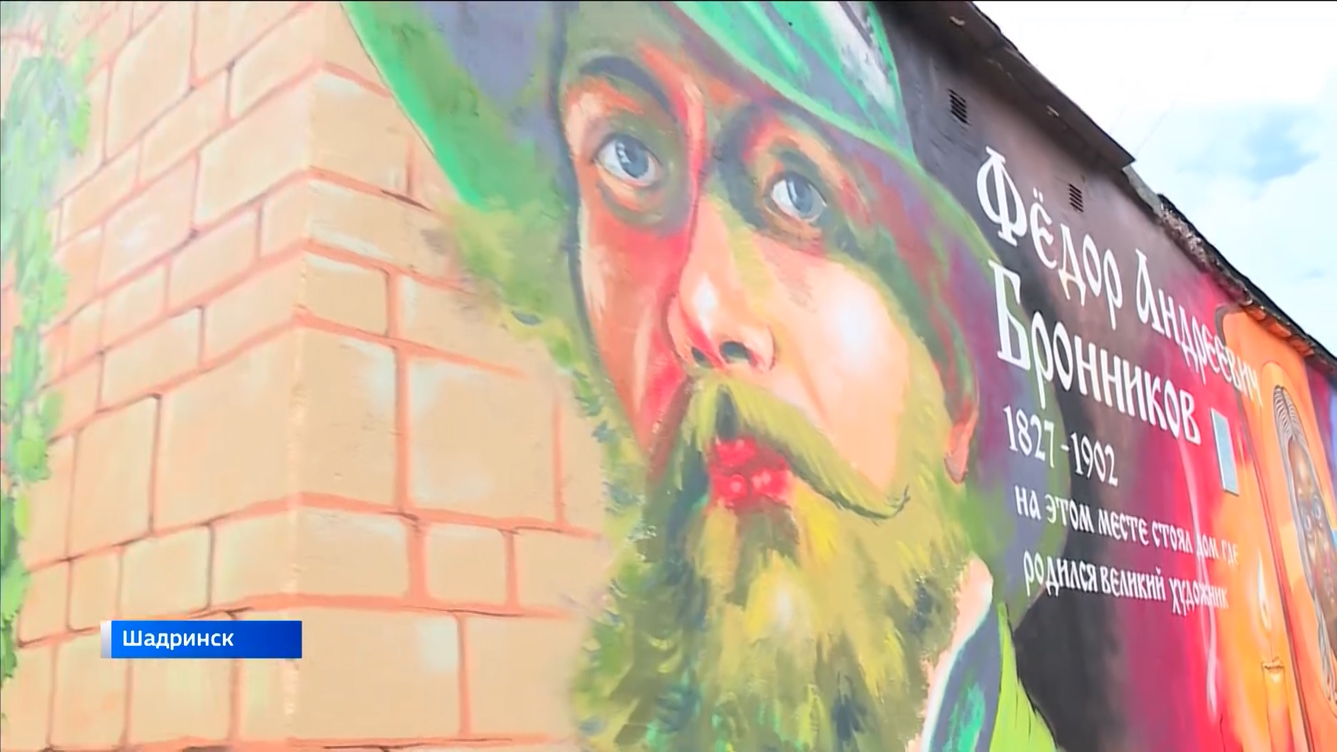 На одной из улиц Шадринска появился новый арт-объект. Он посвящён местному живописцу Фёдору Бронникову. Холстом для местных художников стала бетонная стена на улице Пионерской, здесь когда-то жил Фёдор Андреевич. Кстати, в этом году исполняется 195 лет со дня рождения живописца.