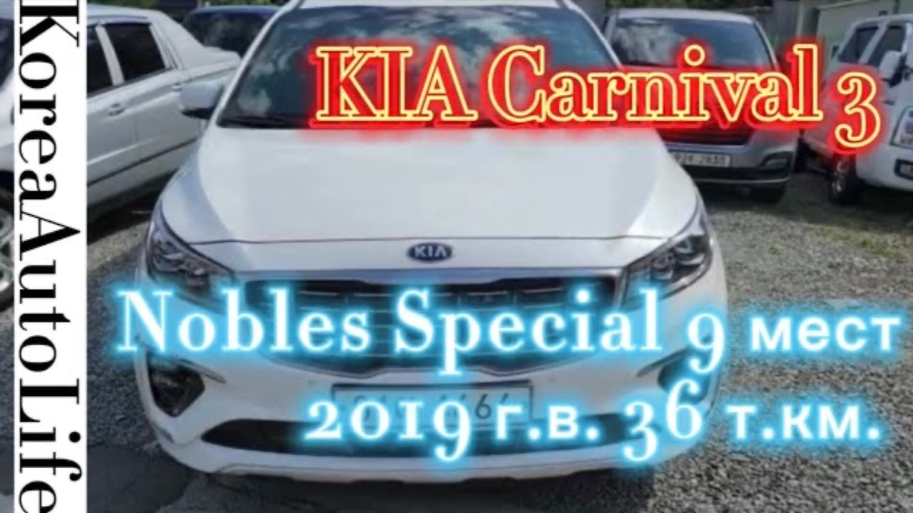 106 Заказ автомобиля с пробегом из Кореи KIA Carnival 3 Nobles Special 9 мест 2019 г.в. 36 т.км.