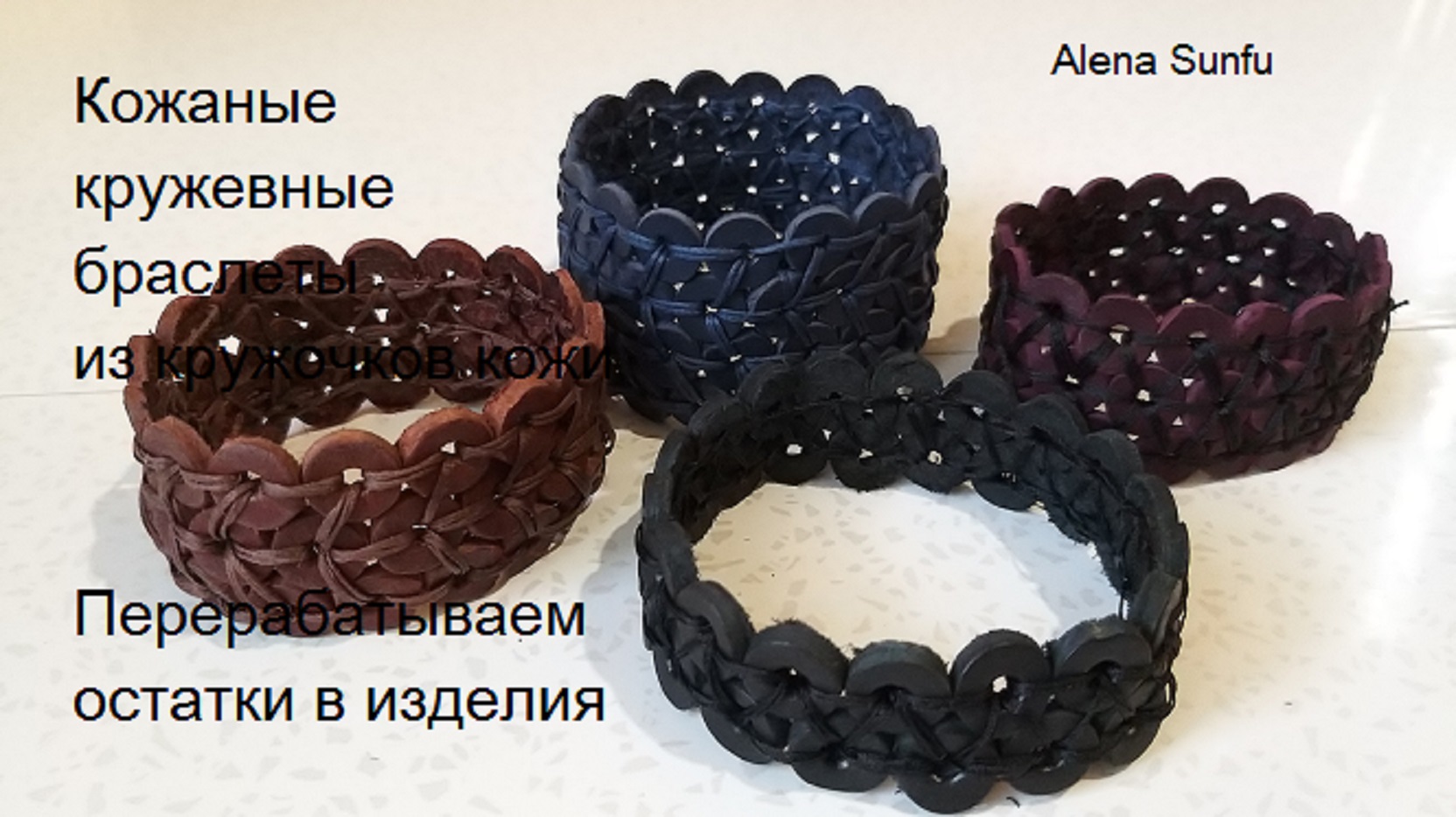 Ажурные кожаные браслеты собранные из колечек кожи.