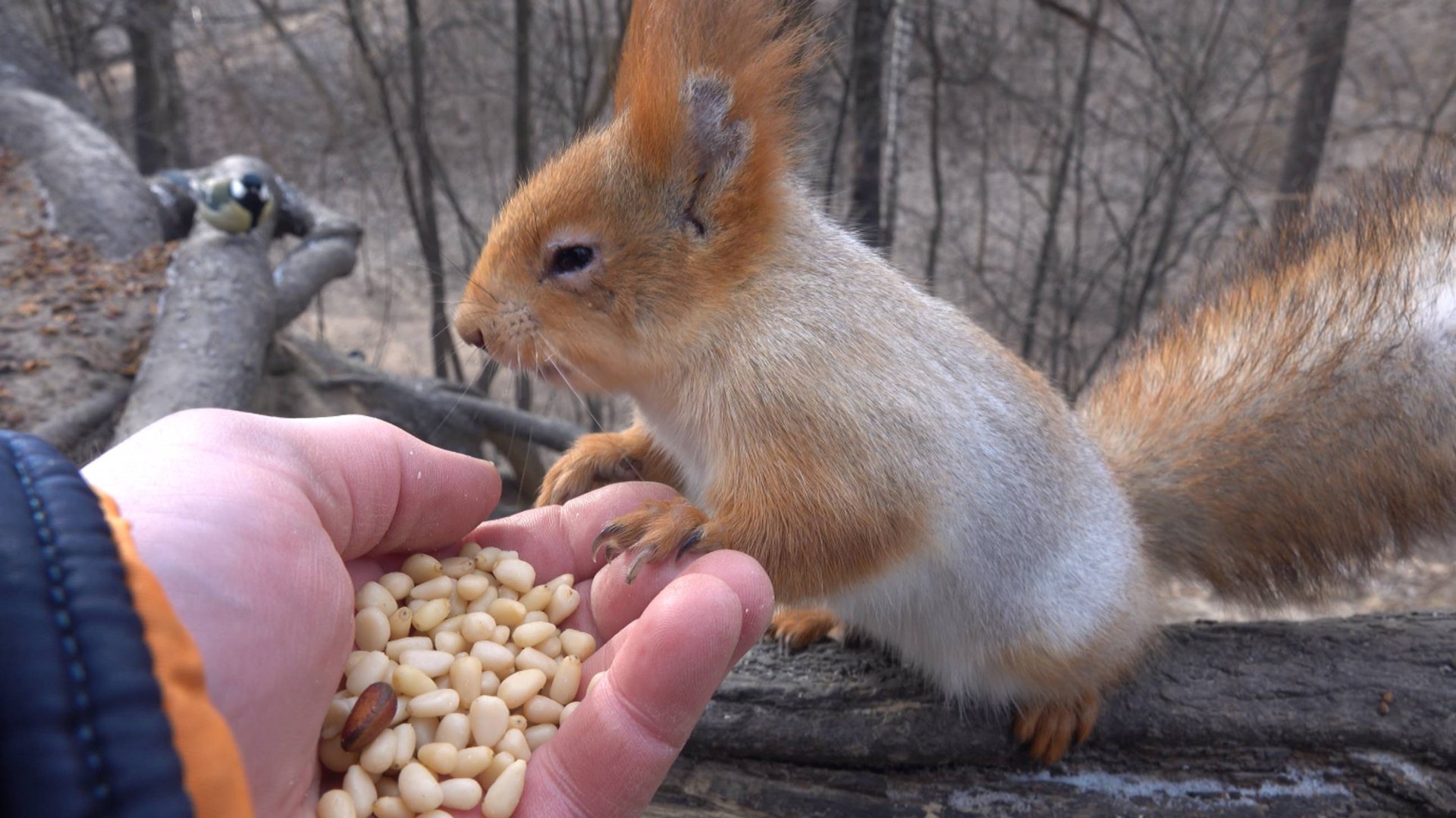Немного покормил Белку с глазиком