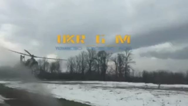 Экипаж вертолета Ми-24 ВКС РФ показывает мастерство пилотирования проходя вдоль трассы на предельно низкой высоте