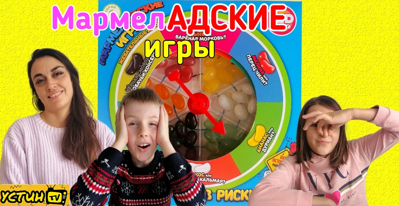Данное видео предназначено для семейного просмотра. Возрастное ограничение 13+. Привет, дорогие наши друзья! В этом видео в гости к Устину пришли Вероника и Богдана! Ну, те, с кем мы ходили на рыбалку ловить рыбу)) И пришли они не просто так, а чтобы сыграть в МАРМЕЛАДНЫЕ игры или, как их ещё называют, МАРМЕЛАДСКИЕ игры!!! Здесь вы узнаете кому попадётся конфета со вкусом перца чили, кому со вкусом вонючего сыра, а кому собачьих консерв ! Будет весело! Приятного просмотра! Все Видео Канала Устин ТВ: https://www.youtube.com/channel/UCyTxg45DenNB8OWoCLhL1Cw/videos?view_as=subscriber Спасибо за просмотр и за лайк! Страница во Вконтакте: https://vk.com/id545418994 Электронная почта: starivolk1986@gmail.com #УстинТВ #мармеладскиеигры #мармеладныеигры #адскиеконфеты