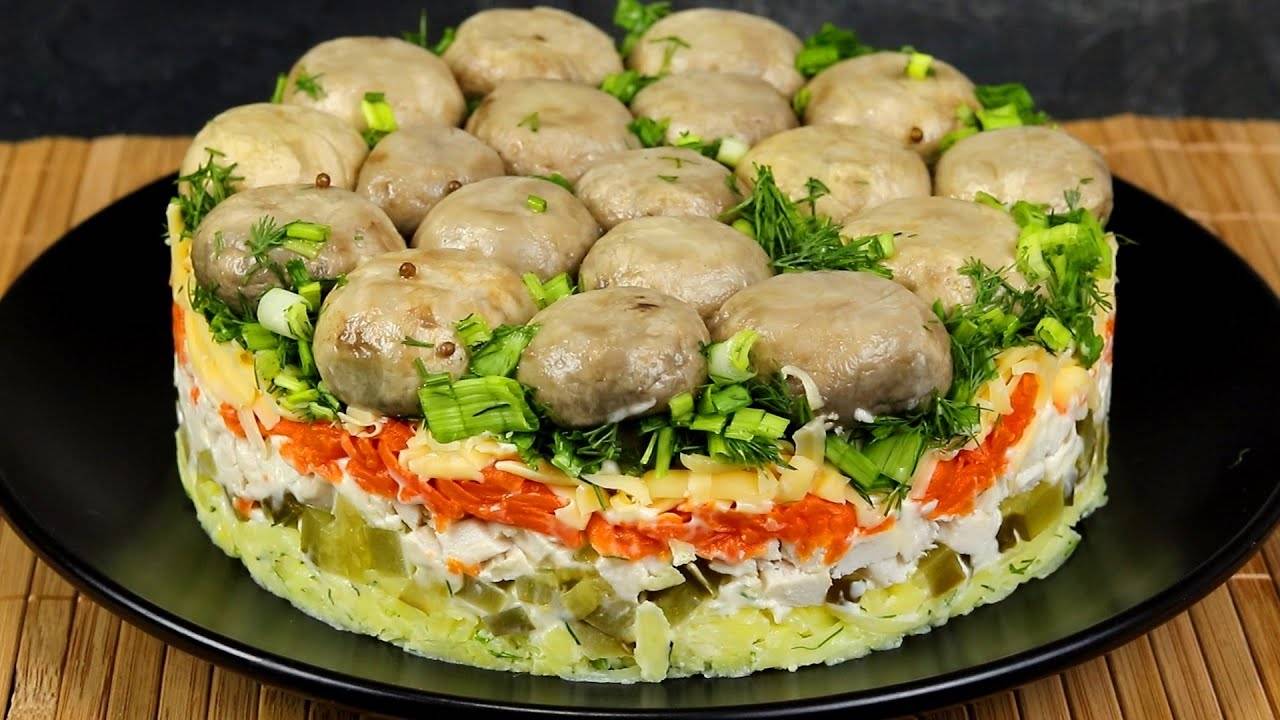 Точно Будем Готовить на Праздничный Стол. Самый вкусный Закусочный Салат на День Рождения! Рецепт: Картофель вареный - 2 шт Укроп Морковь вареная - 1 шт Соленые огурцы - 2 шт Куриная грудка вареная - 1 шт Сыр - 100 г Зеленый лук Маринованные шампиньоны - 250 г Майонез - 100 г Шампиньоны маринованные за 5 минут Друзья, если вам понравилось видео - вы можете помочь каналу: ПОДЕЛИТЕСЬ ЭТИМ ВИДЕО С ДРУЗЬЯМИ в соц. сетях рецепт сохранится у вас на странице! ОЦЕНИВАЙТЕ ВИДЕО! - это приятно для меня и важно для развития канала! НАПИШИТЕ КОММЕНТАРИЙ или хотя бы смайлик. Вам не сложно, а мне будет очень приятно! вкусные советы, вкусные советы рецепты, салат на новый год, рецепты на новый год, рецепт, салат, вкусный салат, салаты, с курицей, праздничный,