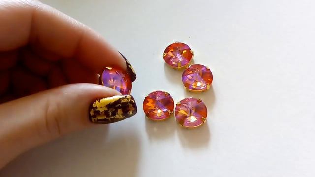 Круглые стразы в оправе . Пришивные. Цвет розовый перелив