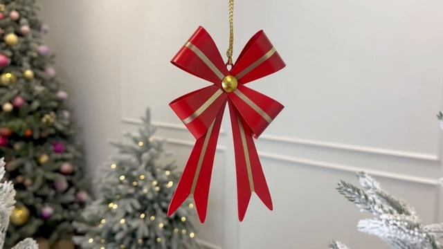 Ёлочное украшение БАНТ ГРАНСЬЁ в полоску, красный, 9 см, GR9124040-1