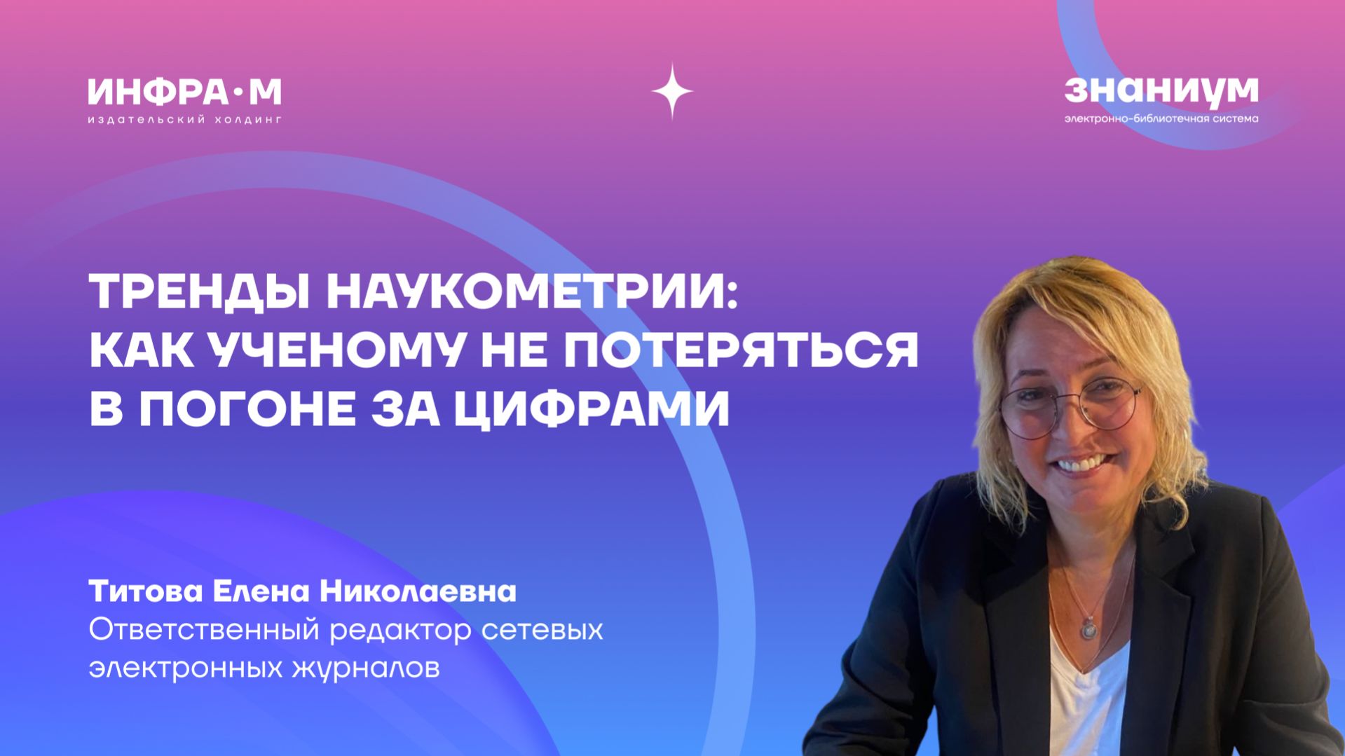 👨🏼💻 Спикер: Титова Елена Николаевна, ответственный редактор сетевых электронных журналов 💡 Мир научных показателей меняется: одни метрики уходят, другие становятся «золотым стандартом». Можно ли управлять своими наукометрическими показателями или это лотерея? На вебинаре мы не просто перечислим показатели, а проведем критический анализ текущей ситуации. Разберем, что на самом деле важно для ученого сегодня, и дадим прогноз на будущее, чтобы вы могли выстроить долгосрочную стратегию развития. Ключевые точки вебинара: 🔹 карта показателей: где смотреть актуальные данные и как их правильно интерпретировать; 🔹 тренды: плюсы и минусы современных подходов к оценке научной деятельности; 🔹 личная стратегия: методика управления своими показателями без накруток и рисков; 🔹 ресурс: как холдинг ИНФРА-М помогает авторам работать над научным рейтингом. 🎬 Смотрите другие наши вебинары ⇢ https://www.youtube.com/playlist?list=PLi2KS7pzBHJVRV.. 🖥 Библиотека электронной литературы ⇢ https://znanium.com/ 📚 Магазин печатных книг ⇢ https://infra-m.ru/ ✅ Подписывайся на наши соцсети и будь в курсе всех новостей и обновлений: YouTube ⇢ https://www.youtube.com/@ebs_znanium RuTube ⇢ https://rutube.ru/channel/24802820/ Telegram-канал ⇢ https://t.me/infra_znanium Мы в Одноклассниках ⇢ https://ok.ru/profile/586134824940