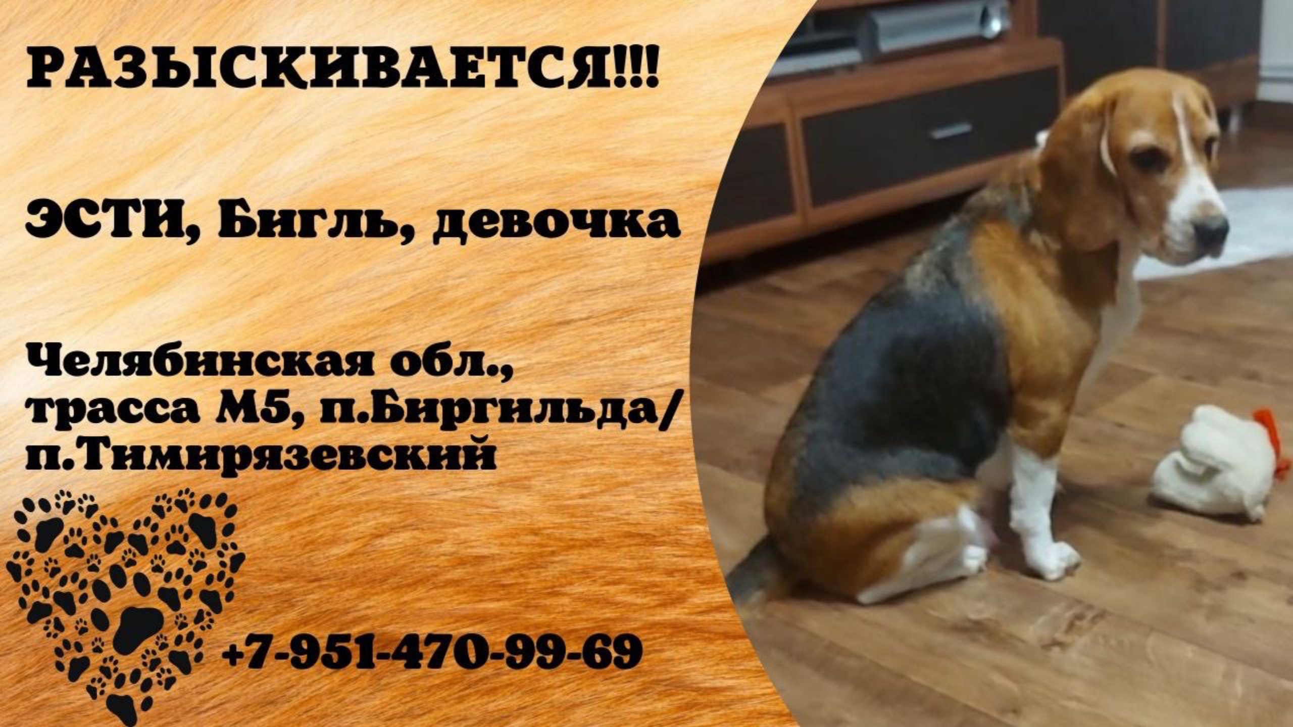 Пропала собака! ЭСТИ, Бигль, девочка. Челябинская обл., трасса М5, п.Биргильда/п.Тимирязевский.