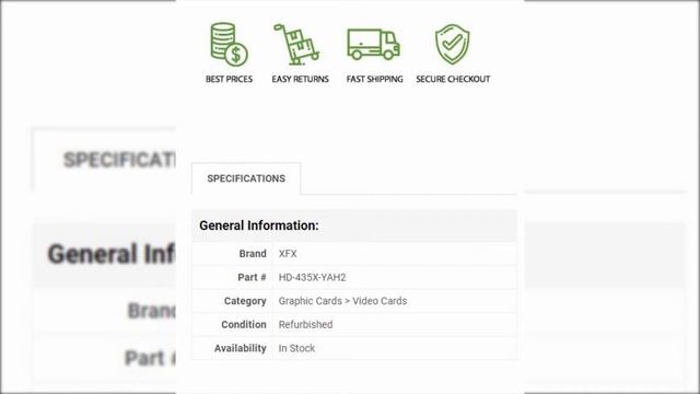 HD-435X-YAH2 XFX ATI Radeon HD 4350 512MB DDR2 VGA/DVI/HDTV PCI-Express Video Graphics Card Buy at http://bit.ly/30altuP Technical Specifications for HD-435X-YAH2 General Information Manufacturer Part Number HD-435X-YAH2 Brand Name XFX Product Type Graphic Card Technical Information API Supported DirectX 10.1 OpenGL 2.0 Processor & Chipset Chipset Manufacturer ATI Chipset Line Radeon Chipset Series HD 4000 Chipset Model 4350 GPU Clock 600 MHz Memory Standard Memory 512 MB Memory Technology GDDR2 Bus Width 64 bit Interfaces/Ports VGA Yes Number of VGA Outputs 1 DVI Yes Total Number of DVI Outputs 1 Dual Link DVI Supported Yes Physical Characteristics Height 2.7" Thickness 750 mil Length 6.6" Miscellaneous Platform Supported PC #HD435XYAH2 #RadeonHD4350 #PCIExpressVideoGraphicsCard