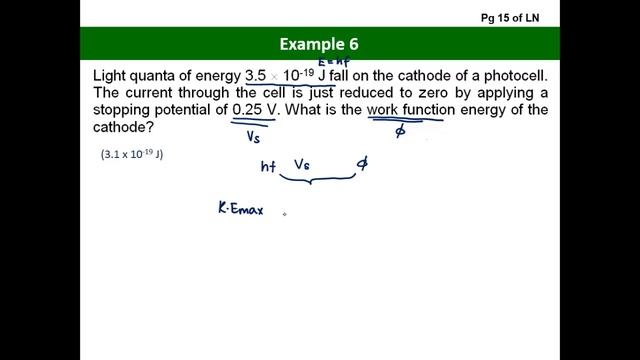 Quantum Lecture Ex 6 Workfunction energy of photon and stopping pot