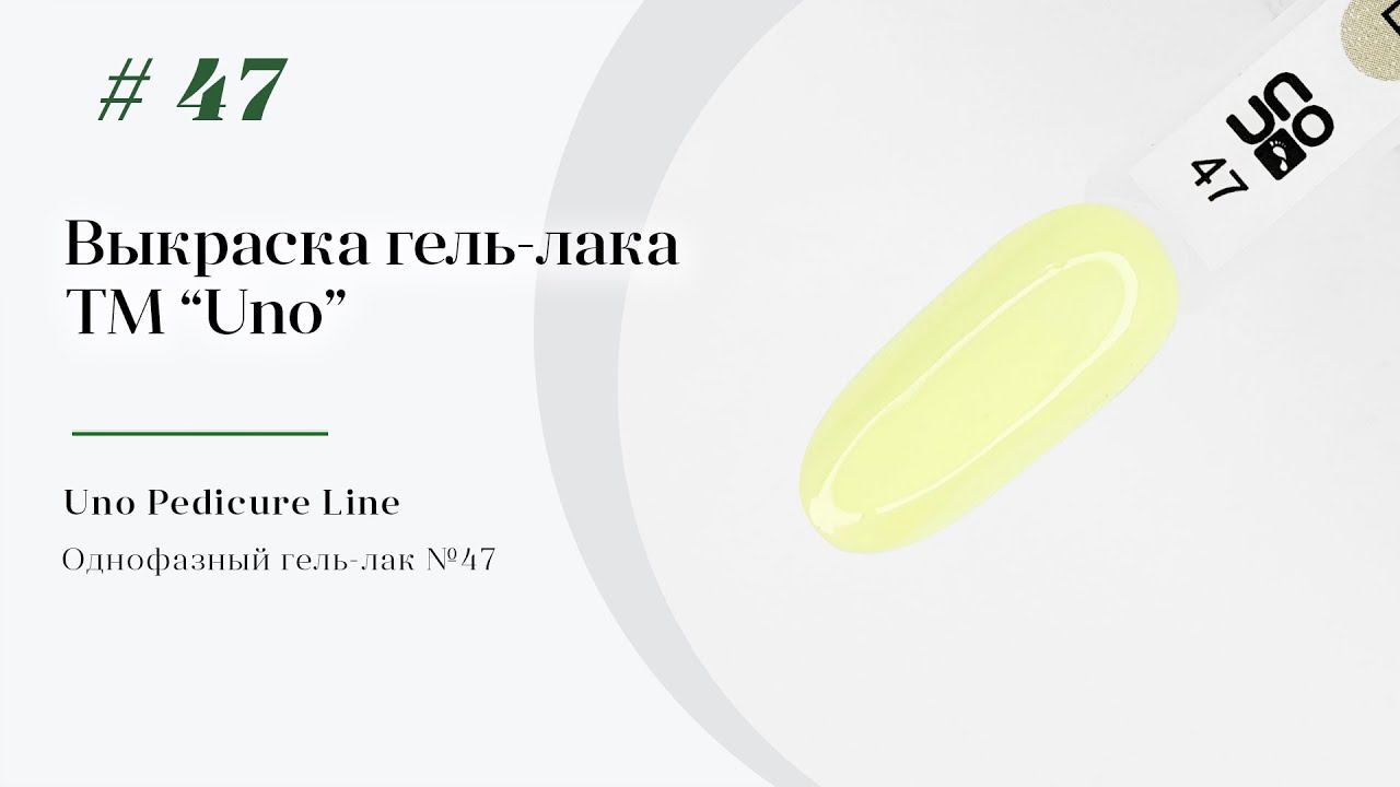 Однофазный гель–лак UNO №47 Ваши ножки готовы к босоножкам? Встречайте новую коллекцию однофазных гель-лаков ТМ UNO - 11 ультрамодных оттенков для совершенного педикюра! База, цвет и топ в одном флаконе ✨ Это не только супернаходка для любительниц экспресс-маникюра и педикюра, но и значительная экономия времени и средств мастера. Красивый и стойкий педикюр без лишних усилий Укрывистые оттенки идеально ложатся в 1-2 тонких слоя благодаря использованию высококачественных пигментов в своем составе. Просто блеск! Революционная формула обеспечивает стойкое глянцевое покрытие до 2-3х недель! Гель-лаки не имеют дисперсионного (липкого) слоя. Рекомендации: ✔️ Рекомендуемое время полимеризации высокопигментированных гель-лаков: 1 мин в LED и гибридных (LED/UV) лампах 36-48W, 2 мин в UV-лампах. ✔️ Для более насыщенного оттенка рекомендуется наносить покрытие в 2 тонких слоя. ________________________________________ Для снятия покрытия рекомендуется использовать гель-ремувер UNO #unogel #UNO __________________________________________________ Все материалы доступны для заказа в официальном интернет-магазине торговых марок UNO и Uno Lux: https://clck.ru/egbtn Мы в соц. сетях Instagram: https://www.instagram.com/unogel_official/ https://www.instagram.com/unogelrussia/ VK: https://vk.com/unogel_official