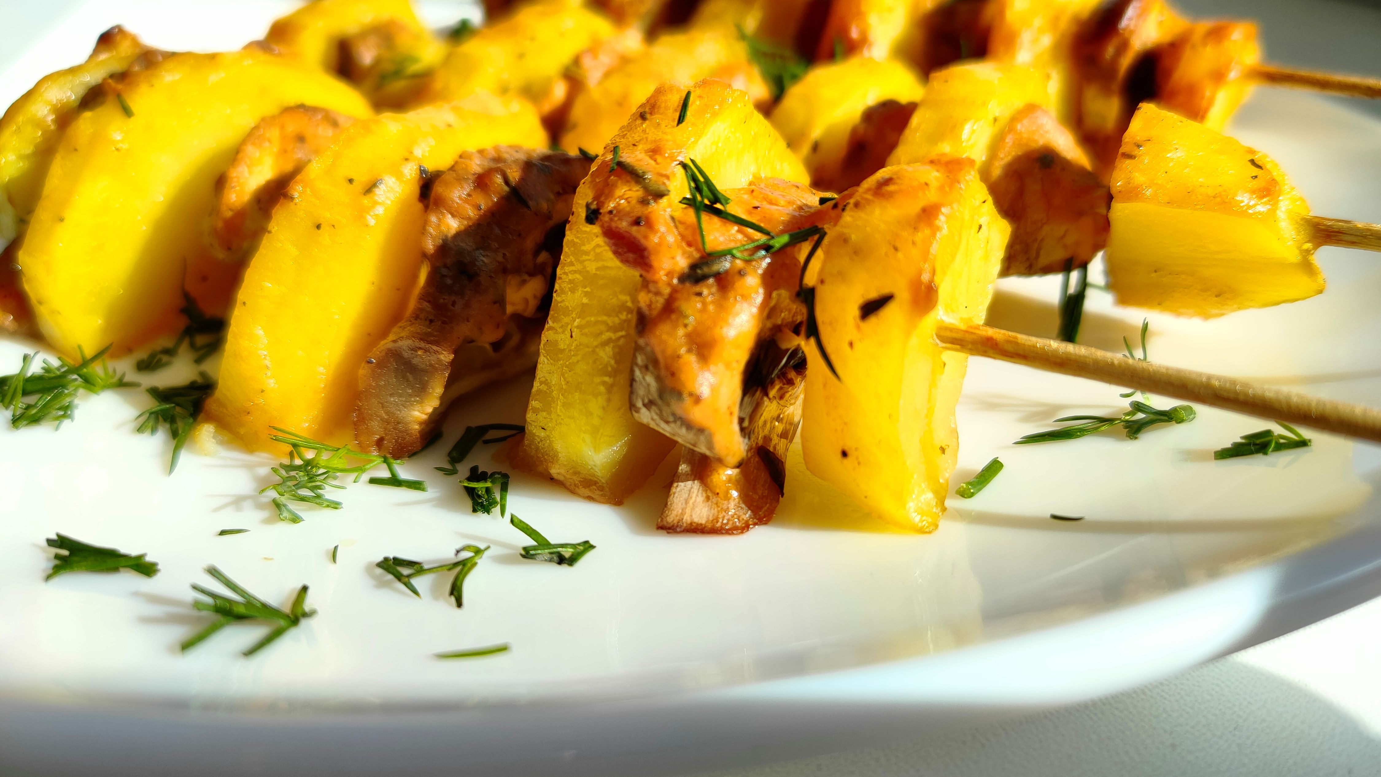 Очень вкусный Картофель с грибами на шпажках.