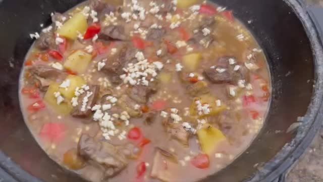 БЫСТРЫЙ ЛАГМАН С ГОВЯЖЬИМИ РЕБРАМИ В КАЗАНЕ НА КОСТРЕ