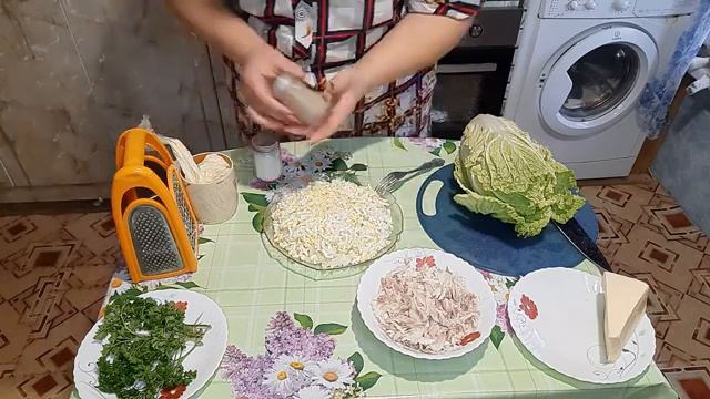 Этот салат всегда съедается до последней крошки , за любым праздничным столом!! Из за простоты в приготовлении и минимум продуктов, вы потратите совсем не много времени и финансов на его изготовление. РЕЦЕПТ: - 300 гр мяса курицы или кролика - 3 шт картофеля - 3 яйца - 1 средняя луковица - 70 гр сыра - не много пекинской капусты - 0,5 ч л соли + 2 ч л сахара + 4 ч л 6% яблочного уксуса + 150 мл воды для маринования лука - 3 ст л домашнего майонеза - соль, перец по вкусу - зелень для украшения ****************************************************************** ВСЕМ ПРИЯТНОГО АППЕТИТА!! От Татьяны с любовью 💞💞💞