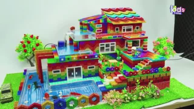 Магнитные шарики - Мега-Особняк с Бассейном и Водопадом Для Черепахи Из Магнитных Шариков