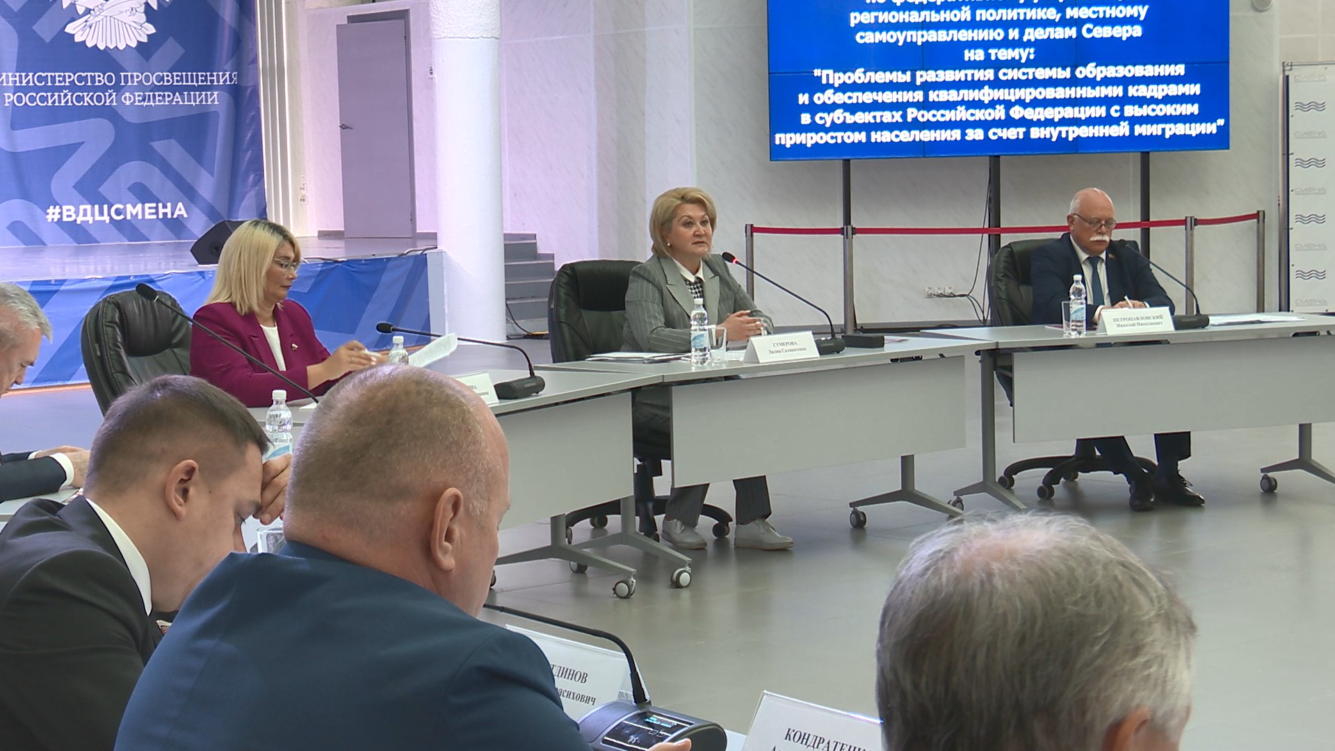 Сразу после экскурсии по новой школе на улице Спортивной Сенаторы, представители администрации Краснодарского края и Законодательного Собрания региона, муниципалитетов Кубани, а также руководители образовательных учреждений посетили «Смену», где и состоялось заседание.