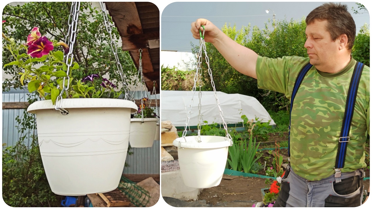 Подвесные кашпо для цветов своими руками! Идеи для дачи и сада Большие цветочные горшки на цепочках.