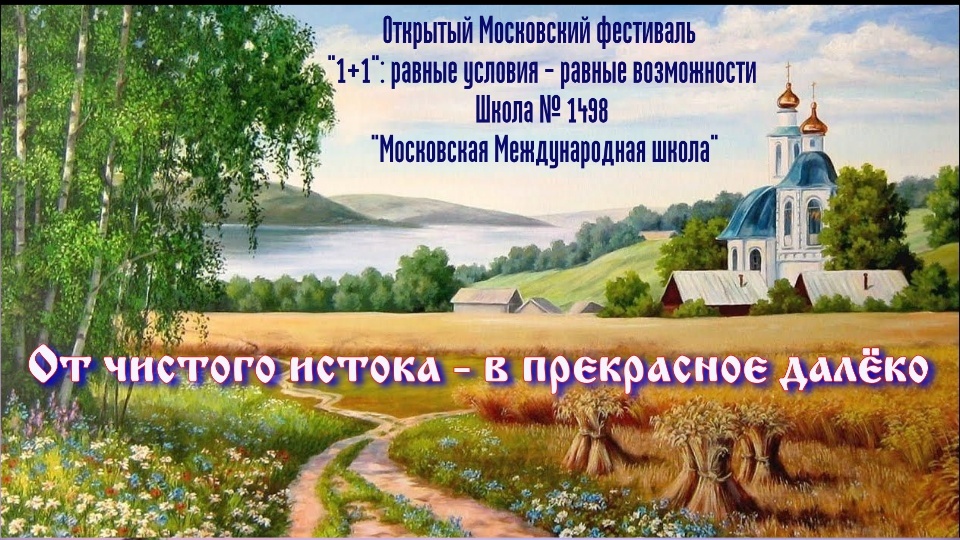 Полная концертная программа "От чистого истока - в прекрасное далёко" Открытого московского фестиваля "1+1": равные условия - равные возможности. Тема фестиваля "От древней Руси до современной России". ГБОУ Школа № 1498 "Московская Международная школа.