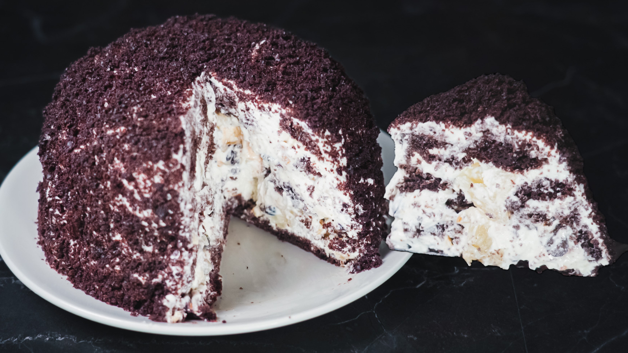 Как приготовить торт ПАНЧО Ингредиенты на форму 18 см: Яйца 2шт Сахар 90 г Молоко 50 г Растительное масло 50 г Мука 110 г Какао 20 г Разрыхлитель 5 г Ванильный экстракт 1 ч.л. Соль щепотки Крем Сливки 33% 200 г Сахарная пудра 75 г Ванильный экстракт 1 ч.л. Сыр Маскарпоне 250 г Сливочный сыр 150 г Сметана 20-30% 200 г Фрукты Ананас 250 г Чернослив 100 г Грецкие орехи 100 г