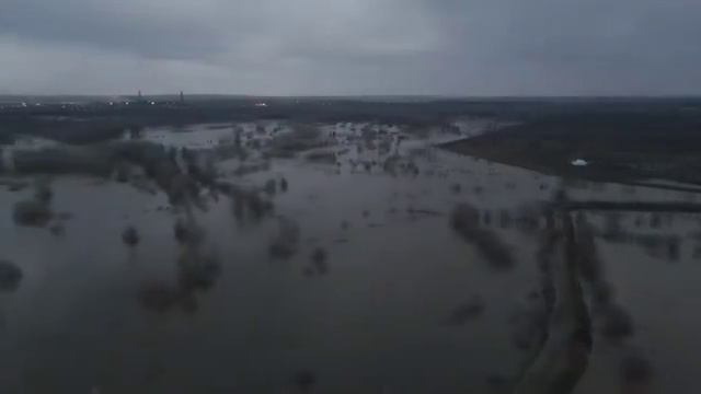 Кадры с дрона показывают последствия порыва дамбы в Орске.