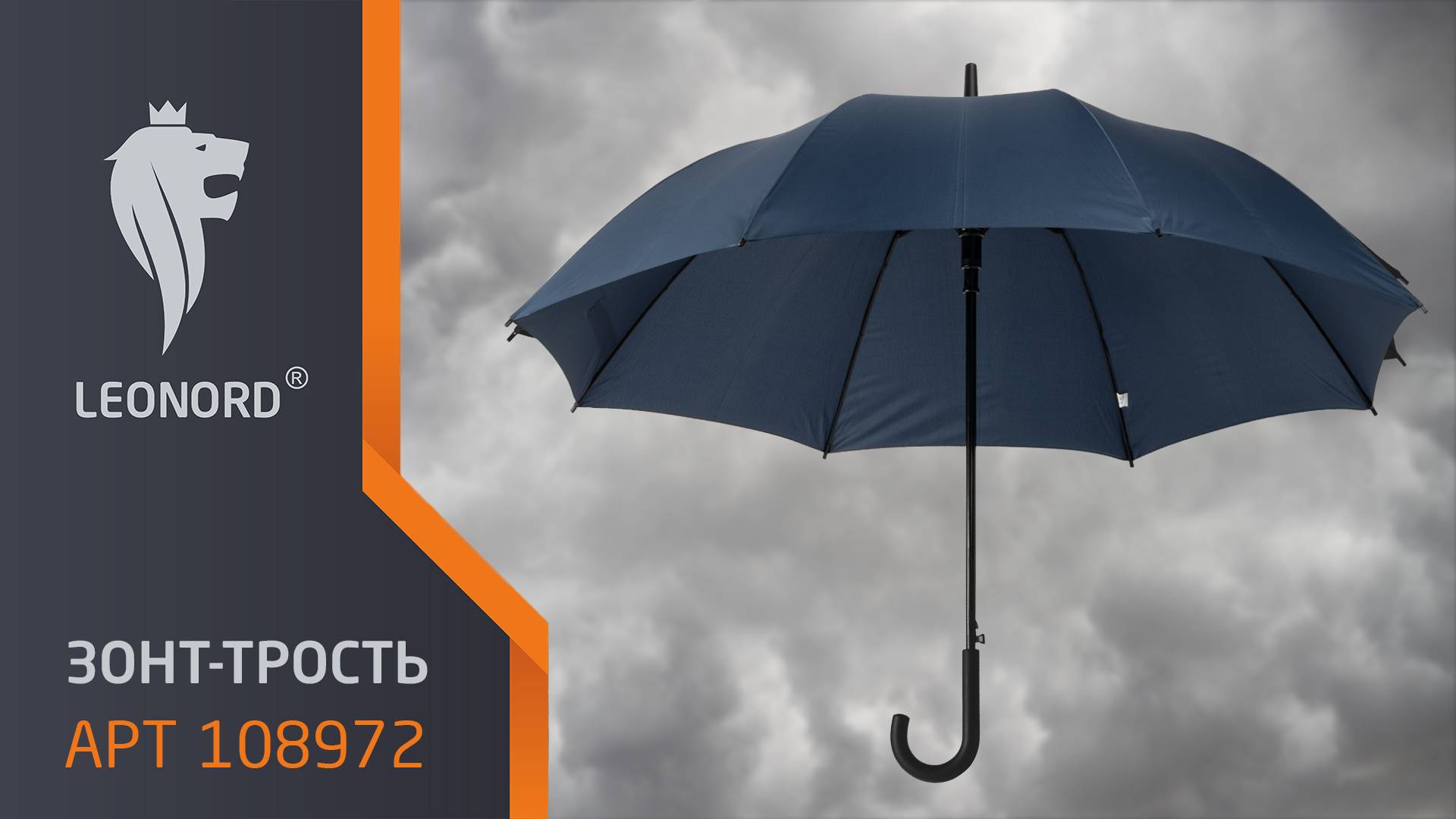 Зонт-трость полуавтоматический, 119 см, цвет: синий
