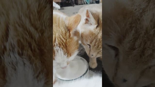 сразу после доения коров мы дали нашим кошечкам сладкое парное молоко