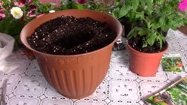 Посадка петунии в подвесные кашпо. Черенкуем вербену. Томат Каменный цветок перевалка в вазон..mp4
