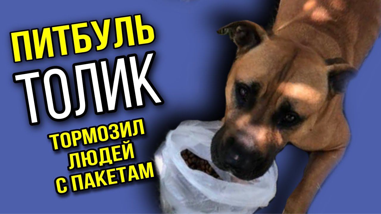 Тощий питбуль Толик заглядывал в пакеты прохожих, а они шарахались. Угадайте, почему