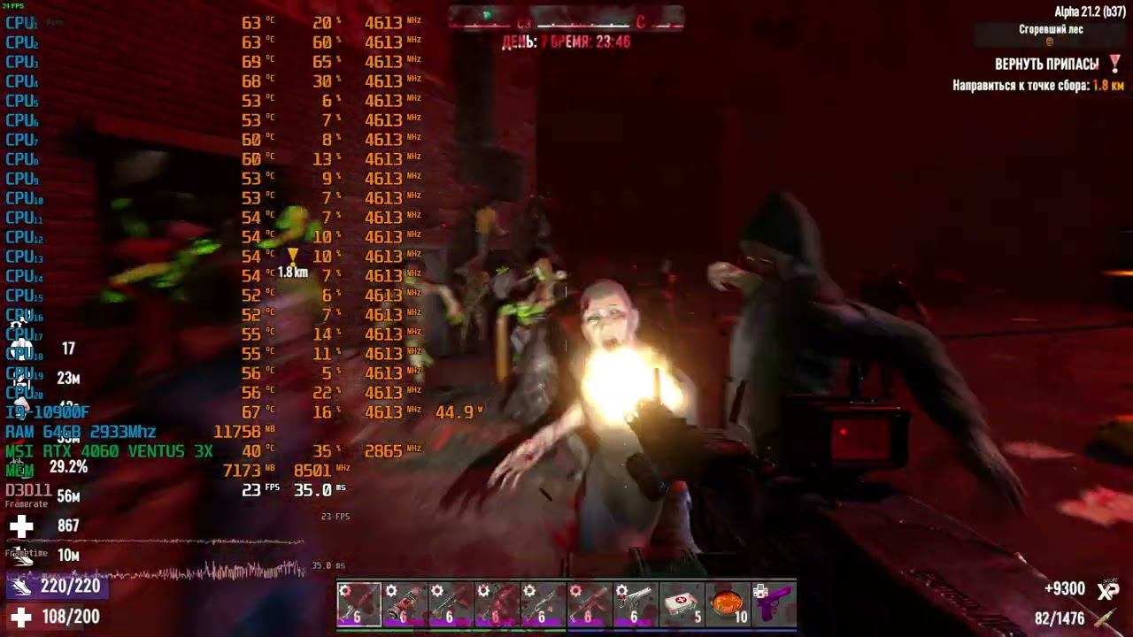 7 days to die i9 10900F WATER PUMP RAM 64GB DDR4 2933 MSI RTX 4060 VENTUS 3X Blood Moon 64 zombies