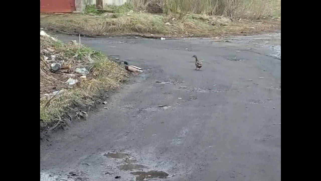 утки бегают по улице, дикие утки в городе))
