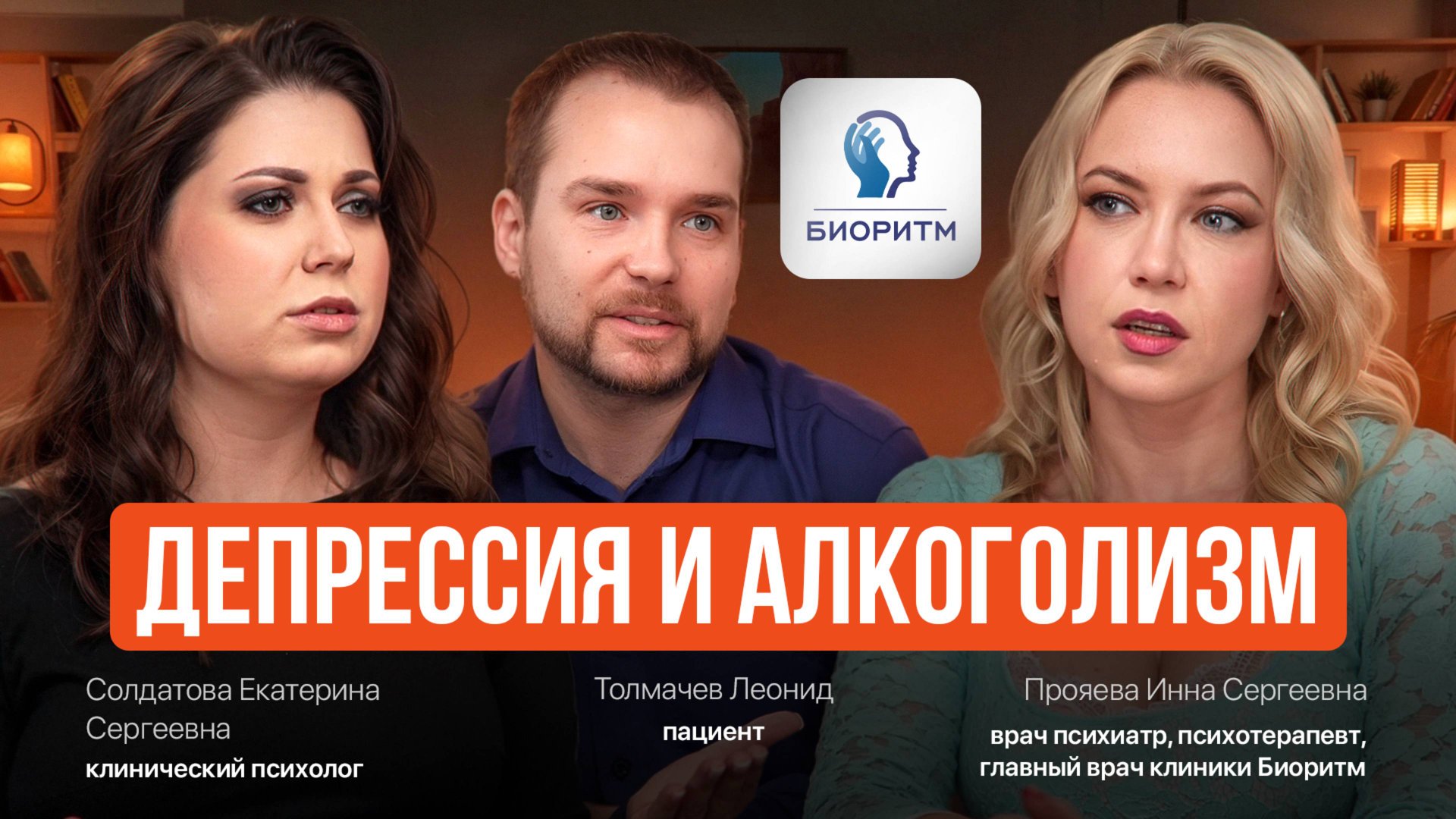 Добро пожаловать на мой канал! В этом видео мы разбираем депрессию и алкоголизм. Что же первично? Эти ответы вы найдете в этом видео. В гостях у меня клинический психолог Екатерина Солдатова и мой пациент Толмачев Леонид. Поддержите мой канал лайком и комментариями! Тайм коды: 00:00 Интро 3:57 Вступление 4:35 Как часто обращаются пациенты с депрессией отягощенной алкоголизмом? 6:09 Какой же он современный алкоголизм? 7:53 История Леонида 9:42 Симптомы депрессии и формирование алкоголизма 16:10 К чему ведет хронический стресс? 17:46 Мотивация к лечению 21:52 Был ли страх начать лечение у психиатра? 26:20 Психотерапия и медикаментозное лечение 26:59 Медикаментозное лечение на всю жизнь? 28:09 Как долго принимать антидепрессанты? 30:31 Роль психолога в лечении 33:38 Как влияет алкоголь на депрессию? 35:37 Влияние алкоголя на головной мозг 37:11 Формирование тяги к алкоголю и борьба с ней 40:50 Канал Леонида «Жизнь без алкоголя» и мотивация 43:28 Советы от Леонида по борьбе с депрессией и алкоголизмом 46:37 Рекомендации психолога Екатерины Солдатовой 49:27 Алкогольная аутоагрессия при депрессии 50:44 Роль семейной психотерапии при лечении депрессии отягощенной алкоголизмом 52:58 Заключение мой instagram @doc_innaproyaeva https://www.instagram.com/doc_innaproyaeva... канал Леонида Толмачева: rutube.ru/channel/39977412 https://vk.com/bez_alcohol?t2fs=afe63b278b... канал Екатерины Солдатовой. https://youtube.com/@soldatova_psy?si=JeChQf1wFD1INPOC
