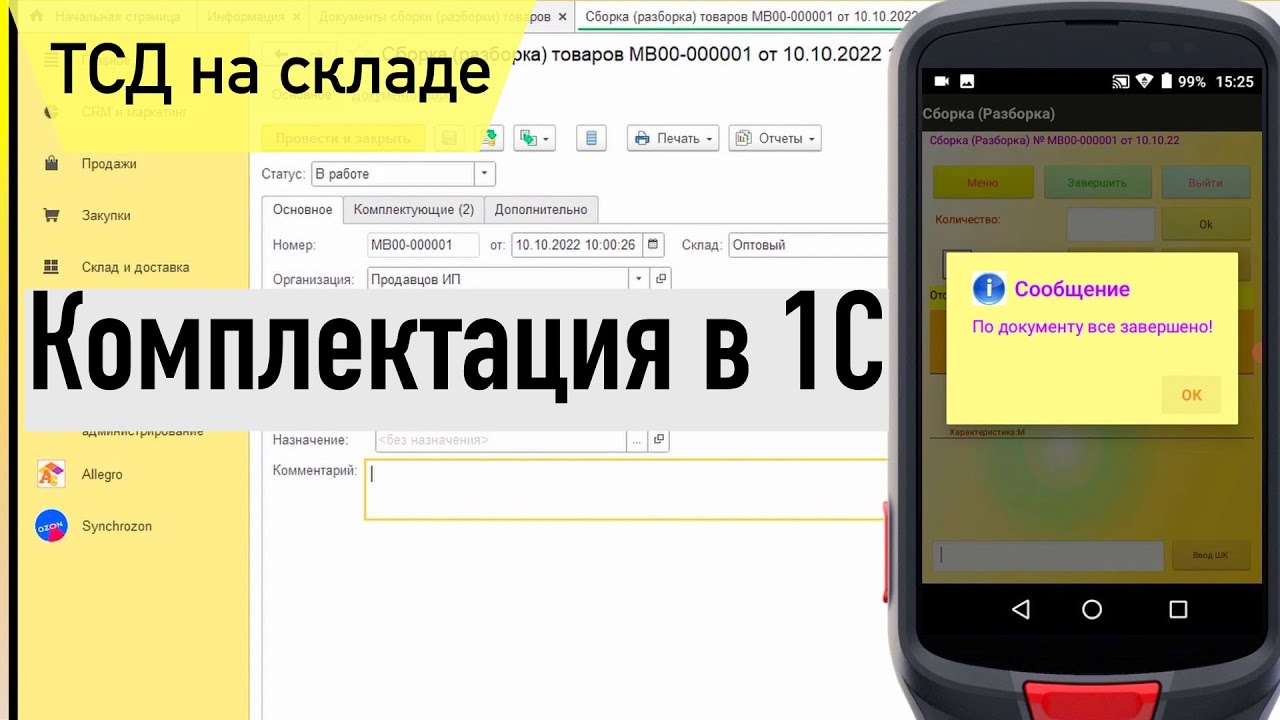 В рамках складских операций часто возникают задачи укомплектовать и разукомплектовать номенклатуру. Например, поступил товар, а для продавать его планируется уже разобранным на комплектующие. Для этого номенклатуру надо разделить на составные части после приемки. Или же наоборот, пришло несколько позиций которые необходимо объединить и продать под одним артикулом. https://allegrosoft.ru/n/komplektaciya-nomenklatury-v-1s-s-tsd Скачать демо версию: https://allegrosoft.ru/n/programma-dlya-tsd-allegrocount AllegroSoft - https://allegrosoft.ru/ канал об автоматизации бизнеса ★Автоматизация магазина и склада, работа с маркировкой. ★Загрузка данных на ТСД из 1с. ★Ускорение комплектации и сбора заказов на 50%. ★Ускорение инвентаризации склада на 70%. ★Возможность автоматизации “ручных” процессов на складе/магазине. Заходите, смотрите и подписывайтесь на канал! Мы в интернете: ➧ Сайт - https://allegrosoft.ru/ ➧ Landing Page - https://sznak.ru/ ➧ Почта - info@allegrosoft.ru ➧ Телефон - +7 (499) 213-02-73 Наш канал: https://www.youtube.com/channel/UC-nZetl2JpigBRnS9rdmObQ