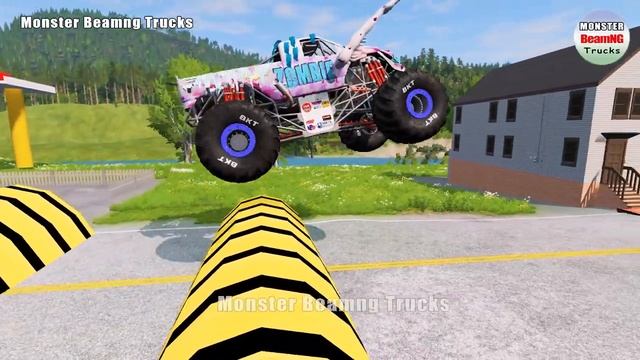 Triple Flatbed Trailer Monster Trucks Transport with Slide Color - BeamNG.drive 514