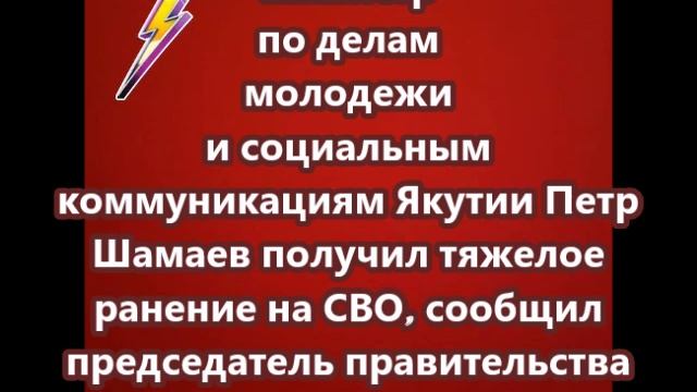 Министр по делам молодежи и социальным коммуникациям Якутии Петр Шамаев получил тяжелое ранение на СВО