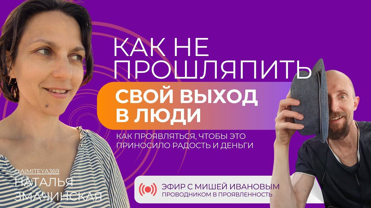 Практикум по самореализации и монетизации умений (программу и цену запросите тут https://t.me/nata_zma ), старт 21 июня. Снова тёплый разговор в эфире - с Мишей Ивановым (https://www.instagram.com/otkroyumiru, https://www.youtube.com/@otkroyumiru, https://t.me/otkroyumiru ), проводником в проявленность и моим мужем❤️ На практикуме по самореализации и монетизации умений Миша проведёт отдельный мастер-класс по выходу на аудиторию. 00:12 о теме эфира 00:45 проявленность - как её понимать 02:54 есть ли возрастные ограничения 03:46 как действовать и не казаться навязчивым 09:00 первые шаги в проявленность: как сделать их легко 13:13 про барьеры 16:39 закон бережного использования энергии: кому нужен твой опыт 18:02 нужно ли следовать алгоритмам 23:34 как найти, что давать людям 30:11 если ты не видишь своей супер-силы 32:25 как продавать свои знания 36:46 если я о многом? о чём писать 40:54 где найти аудиторию, которой я интересен 49:06 как вовлечь аудиторию и получать обратную связь 56:25 какой контент сейчас больше всего цепляет людей Подписывайтесь на наш канал, чтобы не пропустить новые видео и практики, которые улучшат качество вашей жизни. Записаться на ченнелинг-сессию и получить ваши личные ответы можно здесь - https://t.me/nata_zma #практика #состояние #ченнелер #контактер #энергопрактик #эзотерик #проводник #ченнелинг #трансформация #какжить #высшеея #душа #осознанность #предназначение #саморазвитие #самопознание #развитие #радость #возможности #гармония #творчество #любовь #изобилие #натальязмачинская #фантом #местосилы #запрос #найтисебя #самореализация #перевоплощение #родители #род