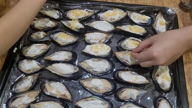 Мидии под сыром.