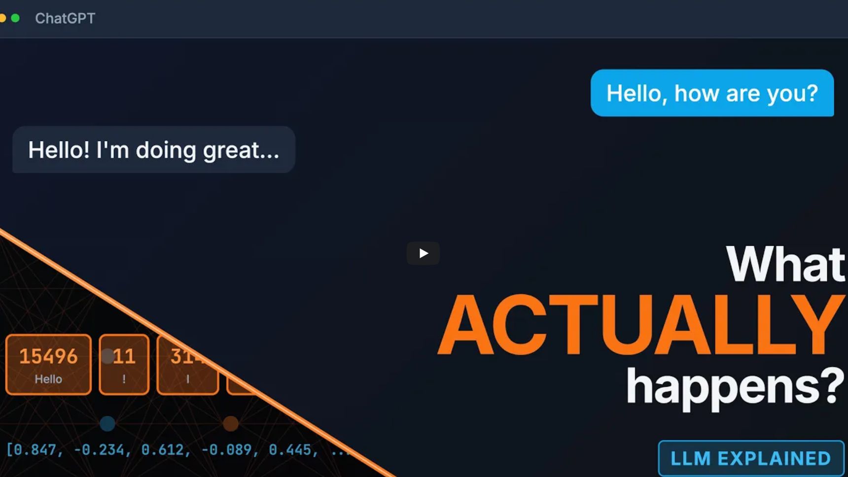Как ChatGPT, Claude и другие LLM на самом деле генерируют текст? Это видео разбирает точный 5-шаговый процесс, который запускается каждый раз, когда вы нажимаете "отправить" — от токенизации до финального слова. Большинство разработчиков используют LLM ежедневно, не понимая, что происходит под капотом. Но знание механизма меняет то, как вы составляете промпты, отлаживаете ошибки и строите приложения с использованием этих моделей. Из этого видео вы узнаете: → Почему LLM читают токены, а не слова (и почему это влияет на ваши API-расходы) → Как эмбеддинги создают «пространство смыслов», где похожие концепции группируются вместе → Что attention делает на самом деле — с реальными примерами, которые можно визуализировать → Почему модель действительно не знает, что она скажет дальше (и это не баг, а фича) → Как параметры temperature и top-p формируют ваши результаты Таймкоды: 0:00 — Удивительная правда о генерации LLM 0:33 — Обзор 5-шагового процесса 0:58 — Шаг 1: Токенизация 2:04 — Шаг 2: Эмбеддинги и пространство смыслов 3:17 — Шаг 3: Трансформер и механизм внимания (Attention) 4:46 — Шаг 4: Распределение вероятностей 5:46 — Шаг 5: Сэмплирование, temperature и top-p 7:05 — Авторегрессивный цикл 8:05 — 3 практических инсайта, которые можно использовать уже сегодня #LLM #ChatGPT #MachineLearning #AI #Programming #Developer #DeepLearning #Transformer #NLP #TechExplained #нейросети #искусственныйинтеллект