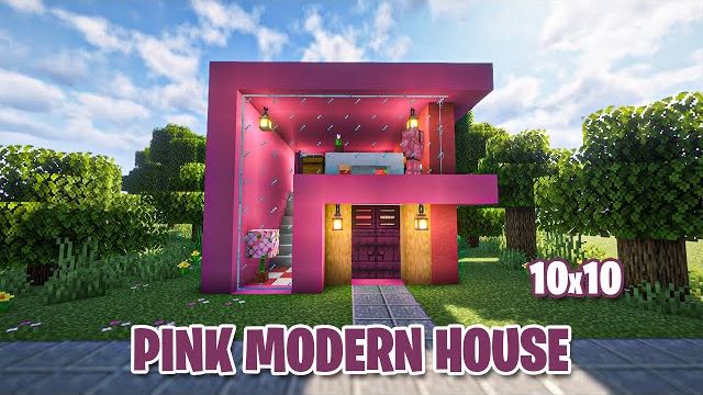 Современный розовый дом в Minecraft — обучающее видео.