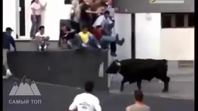 Бег быков в Испании.