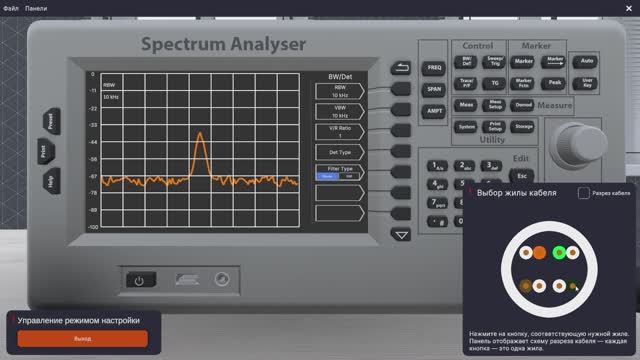 Предназначена для ознакомления с физическими принципами возникновения утечек информации через электрический канал, визуализации появления информативных наводок при параллельном пробеге кабелей, а также демонстрации работы средств активной защиты информации. Функциональность • Выбор типа кабеля и изменение расстояния между кабельными линиями для демонстрации влияния на уровень наводок; • Выбор жилы кабеля для подключения измерительного оборудования и снятия информативного сигнала; • Детальное отображение разреза кабеля с визуализацией структуры (количество жил, наличие и тип экранирования); • Настройка и взаимодействие с контрольно-измерительным оборудованием и средством активной защиты; • Динамическая визуализация электромагнитных полей и физических процессов, происходящих в кабелях при передаче сигнала; • Работа с виртуальным частотным анализатором и демонстрация спектральных характеристик сигнала до и после применения защиты.
