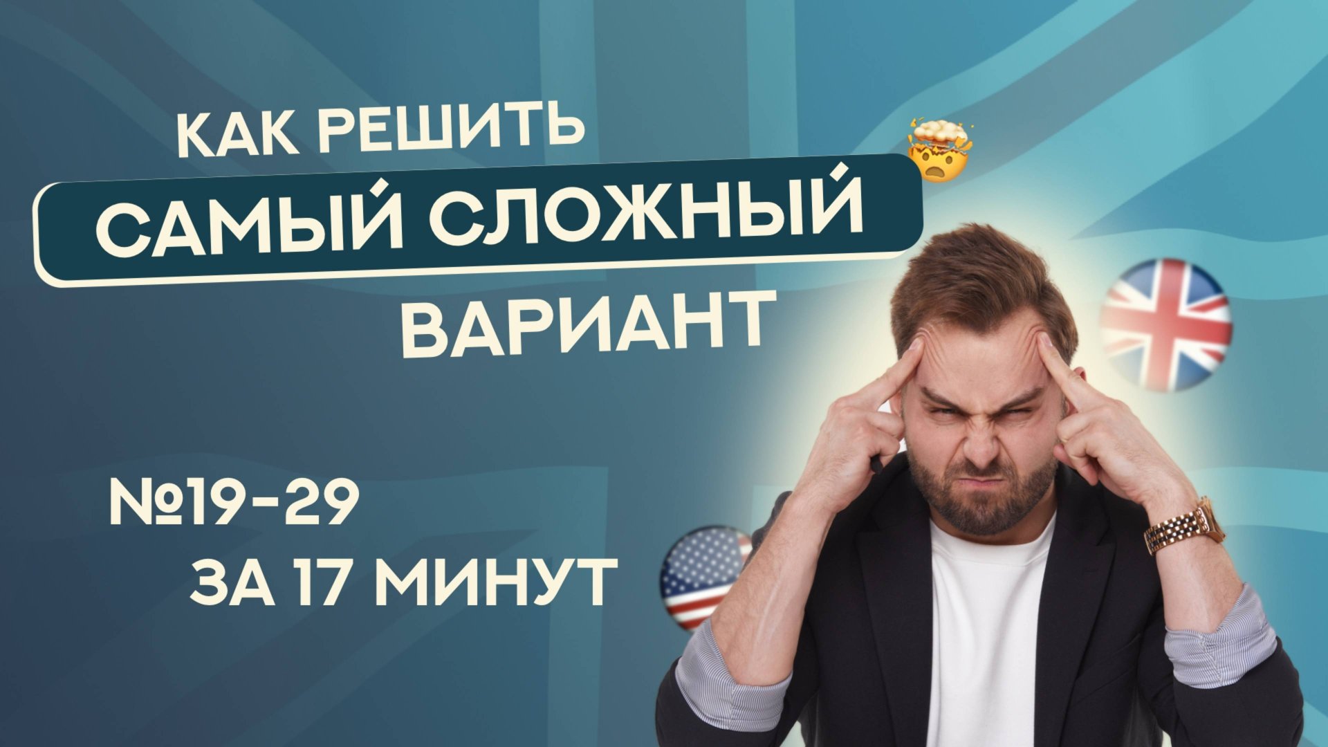 Салют! Вашему вниманию представляется мой разбор одного из САМЫХ СЛОЖНЫХ варинтов ЕГЭ по английскому языку Здесь вы узнаете как правильно вести себя при столкновении с самыми сложными и непонятными заданиями, а самое главное – научитесь понимать принцип работы с ними, а не будете их зубрить! 📌 Также для вас я подготовил файл со 150+ словами для заданий №25-29! Забирайте его в моём тг-канале: https://t.me/buzzkilleng/442 Я очень ценю вашу обратную связь! Don't be strangers! Таймкоды: 00:00 – Интро 00:12 – Дисклеймер 00:28 – Приветствие 00:44 – Крутой тгк 01:02 – О видео 01:18 – 19 задание 03:31 – 20 задание 04:41 – 21 задание 06:01 – 22 задание 07:38 – 23 задание 08:23 – 24 задание 09:37 – 25 задание 11:00 – 26 задание 12:26 – 27 задание 13:23 – 28 задание 14:15 – 29 задание 16:21 – Тгк для сотки 16:31 – Прощание