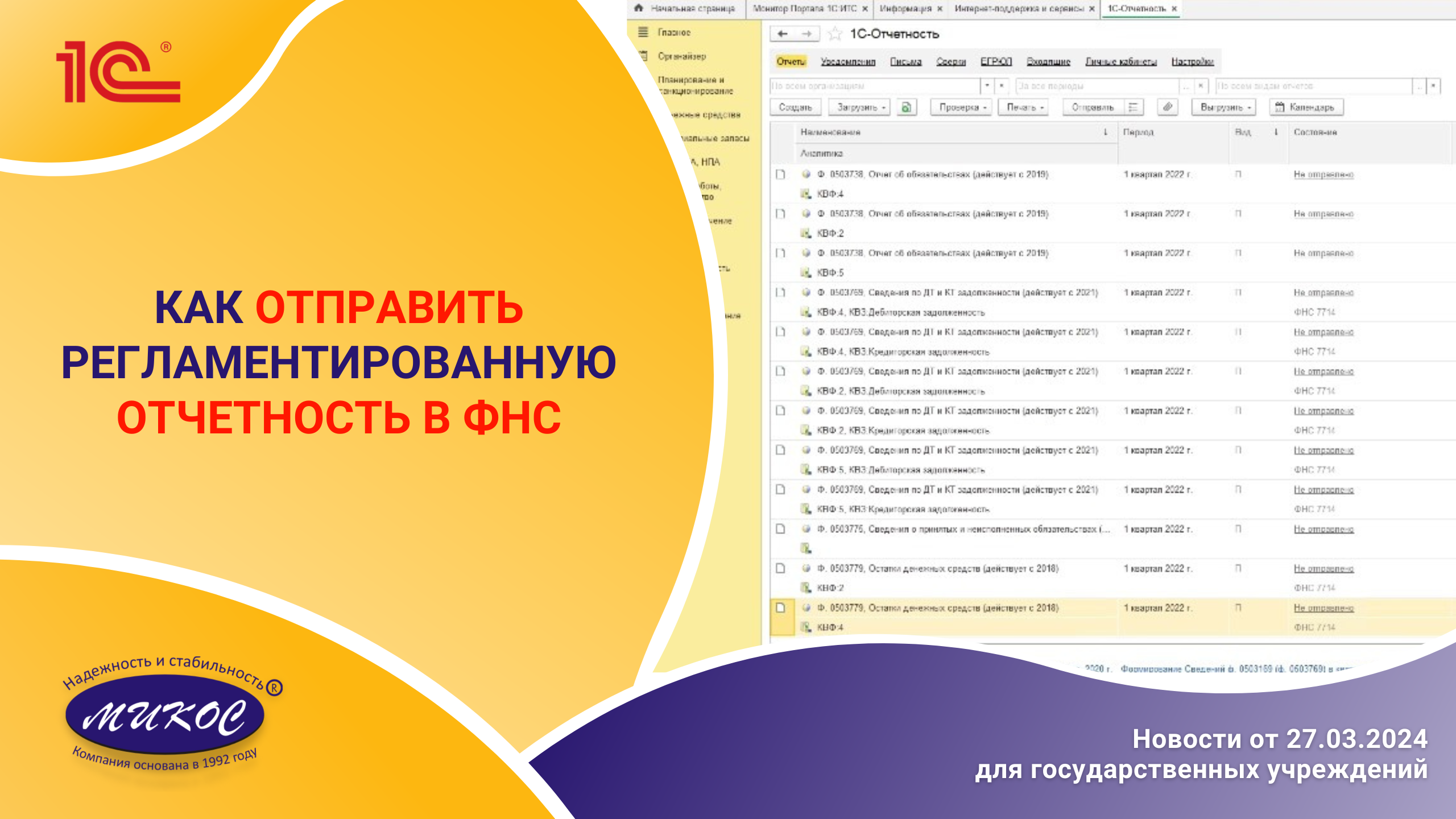 Как отправить регламентированную отчетность в ФНС | Микос Программы 1С