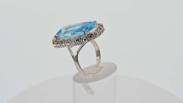 Кольцо С 925 с голубым топазом и турмалином 21*31мм, размер 19,5, 11,1г с101026