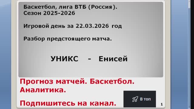Прогноз матча 22.03.26 УНИКС Енисей Баскетбол