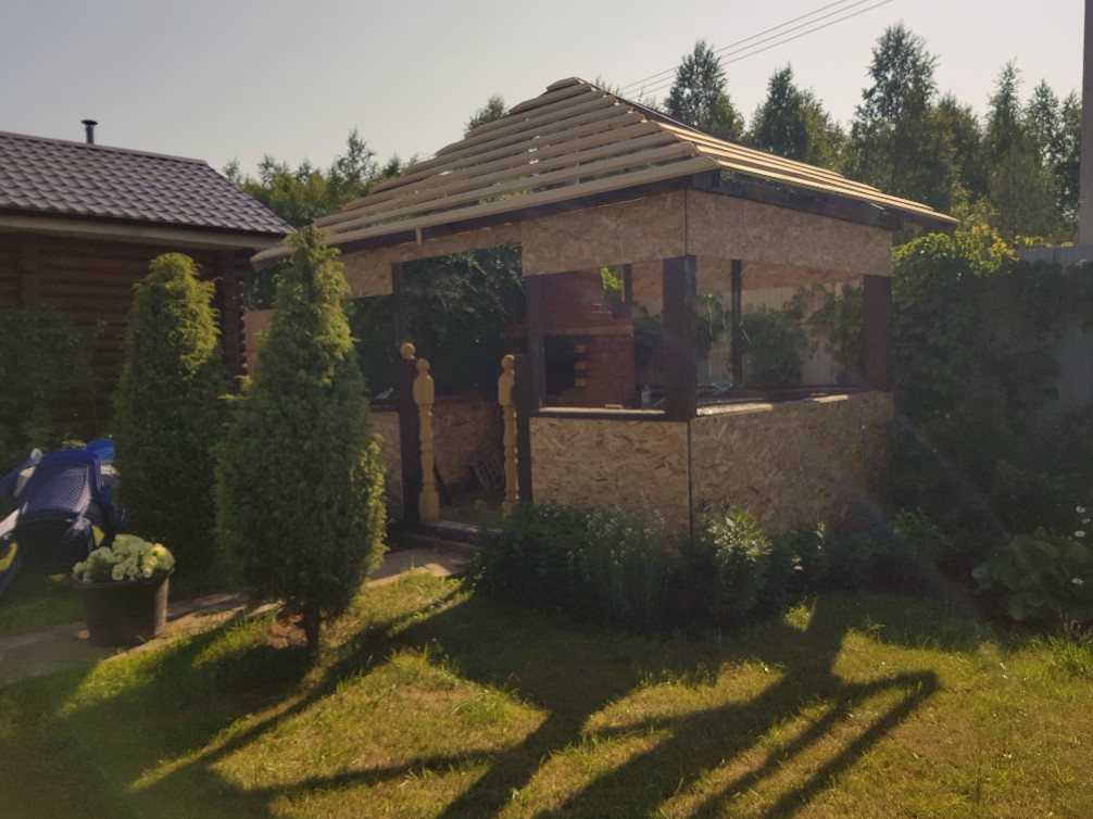 Беседка для отдыха. Зона барбекю для загородного долма.