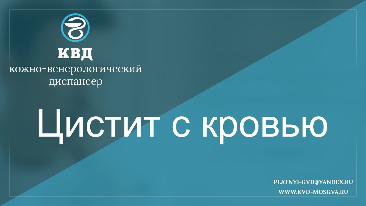 Цистит с кровью (еще называют геморрагическим) – воспаление слизистой мочевого пузыря у женщин, которое сопровождается кровотечением различной интенсивности. Подробнее - https://kvd-moskva.ru/cistit-s-krovyu-u-zhenshchin/ Для подробной консультации по этому вопросу, обращайтесь в платный центр КВД-Москва. Наши телефоны: 8 (495) 642-30-37, 8 (495) 532-66-57 Наш e-mail: platnyi-kvd@yandex.ru Наш сайт: http://kvd-moskva.ru