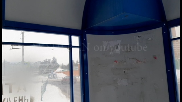Рекламу нанесли краской на стекло остановки.